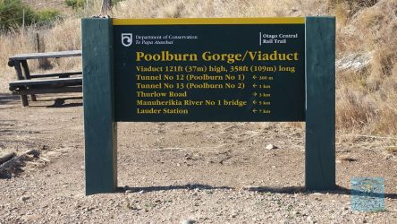 Das Klammtal “Poolburn Gorge” mit 2 Tunneln und einer langen Brücke ist ein landschaftlicher Höhepunkt auf der Strecke. Wir konnten uns gut vorstellen, welche anstrengende Schinderei der Bau der Trasse durch diese Felsenlandschaft war. Die einzelnen Bahnstationen unterwegs zeigten uns lebendige Bilder aus dieser Zeit. Da haben wir es heute doch viel einfacher, hier voran zu kommen.