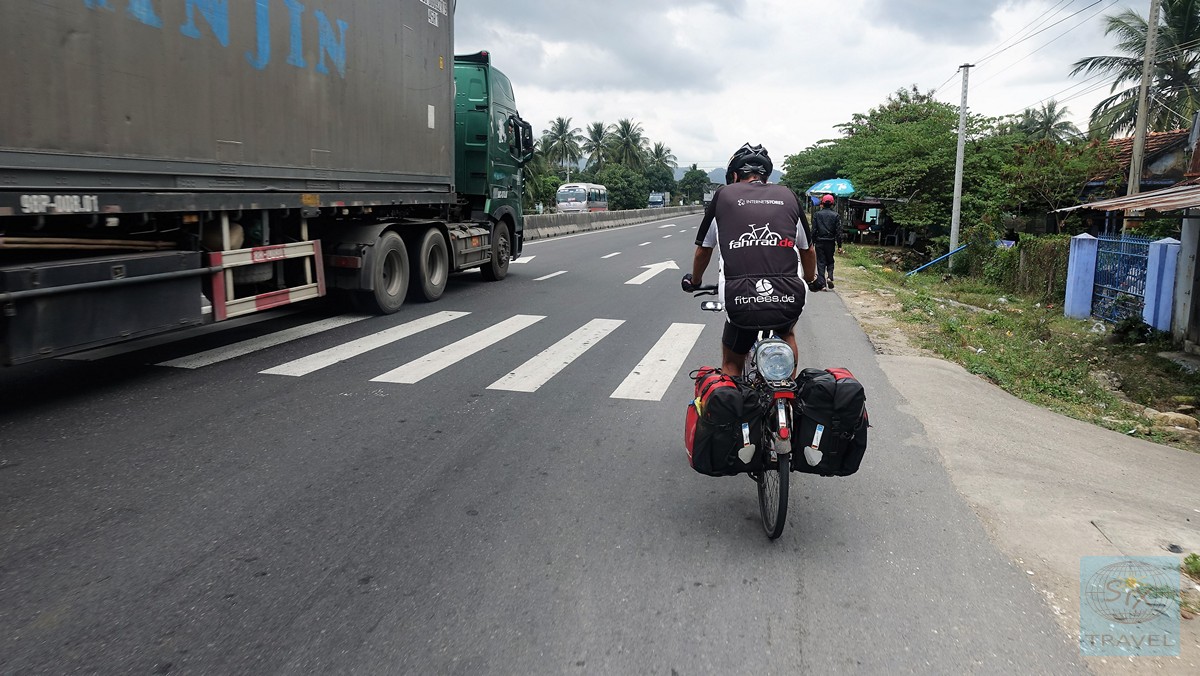 Die größte Herausforderung für das Fahrradfahren durch Vietnam ist der Highway 1 (AH 1) entlang der Küste. Es ist unmöglich, diese „Lebens- und Transportader“ des Landes völlig zu meiden. Mit Hilfe von Google Maps haben wir es allerdings geschafft, für die gesamte Strecke durch das Land nur 3 komplette Tage auf dem Highway 1 radeln zu müssen. An allen anderen Tagen konnten wir ihn gänzlich oder in großen Abschnitten meiden.