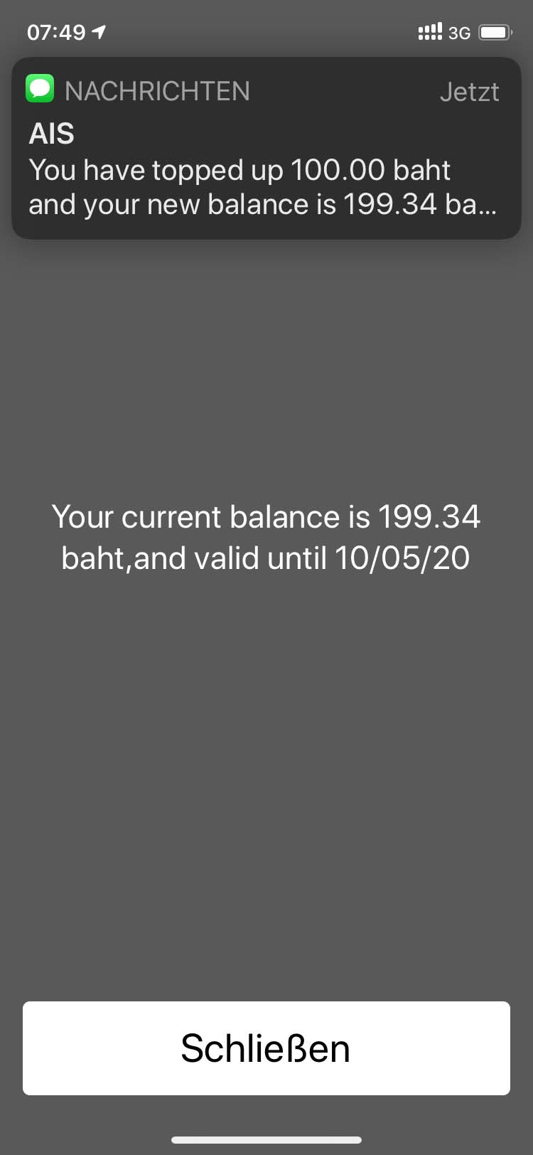 Das Aufladen von Guthaben über die App bzw. Webseite von AIS ist nur mit einer Thailändischen Kreditkarte möglich. Daher muß jeder Ausländer das Guthaben direkt in einem Laden kaufen. Hier werden auch ausländische Kreditkarten akzeptiert.